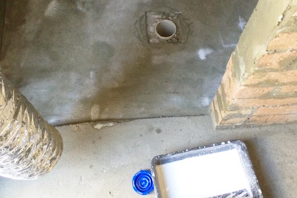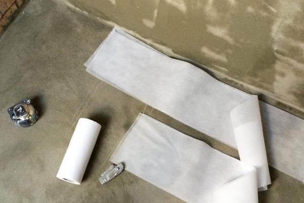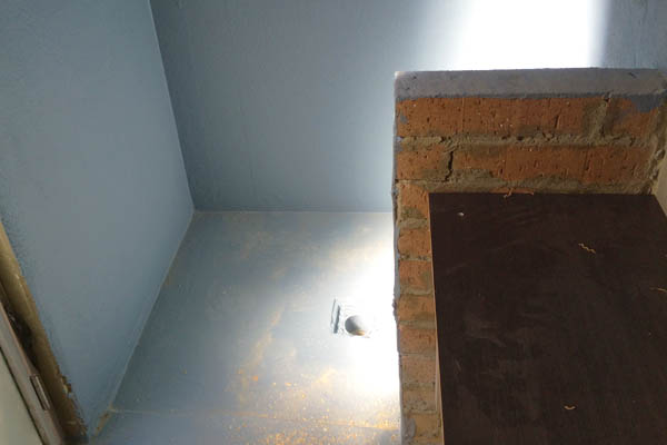 We cut up the bandage for all internal corners, we do this as it acts as reinforcement so no cracks will appear in waterproofing due to general building movements, once we have bandage ready and all primed, we apply 1 coat of Ardex WPM155 waterproofing, then we carefully place bandage to all internals.